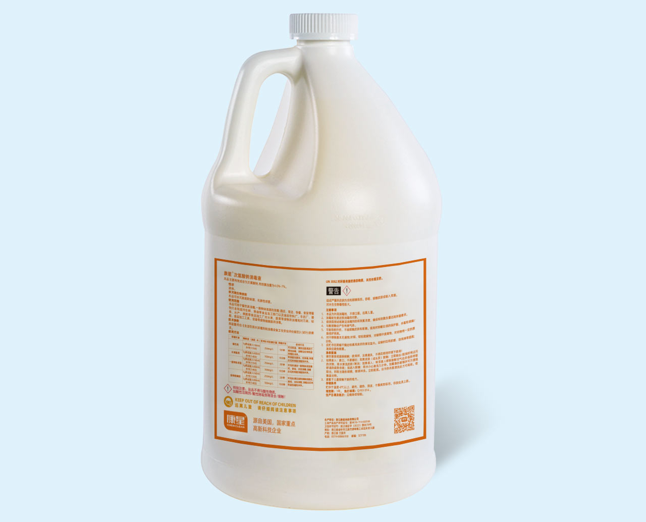 康星®次氯酸钠消毒液可用于餐饮具消毒,一般物体表面的消毒;酒店、饭店、快餐、食堂等餐饮行业和超市生鲜、熟食等食品加工部门以及食品饮料厂、牛奶厂、屠宰、水产、果蔬等食品加工厂对水果、蔬菜等食物的消毒和对刀具、砧板、食品加工工具、设备等食物接触面的消毒。